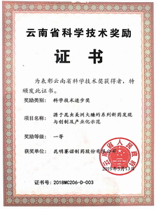 云南省科學(xué)技術(shù)獎(jiǎng)勵(lì)證書(shū)