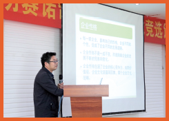 決賽當(dāng)天,公司銷(xiāo)售副總孫總、行政人力副總董總、財(cái)務(wù)副總程總作為決賽評(píng)委出席了比賽活動(dòng),領(lǐng)導(dǎo)們也針對(duì)比賽提出了意見(jiàn)與建議:培訓(xùn)工作,是企業(yè)發(fā)展、成長(zhǎng)中必不可少的部分,建設(shè)自己的培訓(xùn)師隊(duì)伍,有利于員工更加方便、快速的掌握業(yè)務(wù)知識(shí)及公司產(chǎn)品知識(shí),有利于各部門(mén)業(yè)務(wù)知識(shí)的強(qiáng)化與提升,通過(guò)培訓(xùn)比賽,部分員工的培訓(xùn)能力有了較全面的展示,但培訓(xùn)是一項(xiàng)綜合能力要求較高的工作,我們?nèi)孕杓訌?qiáng)培訓(xùn)能力的培養(yǎng)和鍛煉,組建出自己的人才隊(duì)伍。