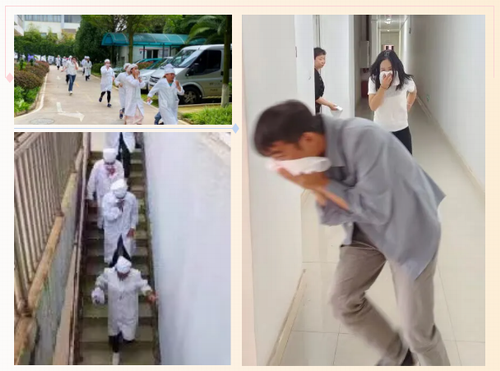 為準(zhǔn)確把握和了解員工應(yīng)急處置能力和水平,本次活動(dòng)模擬火災(zāi)發(fā)生,檢驗(yàn)員工應(yīng)對(duì)突發(fā)事件的處置和逃生能力?;馂?zāi)警報(bào)聲響起,員工們立即在指揮員的指揮下就近選擇逃生樓梯有序向樓下疏散,疏散過程中員工們壓低身子,用濕毛巾或衣物捂住口鼻,防止煙氣進(jìn)入,整個(gè)過程井然有序。為了豐富員工對(duì)應(yīng)急器材的使用及體驗(yàn),演練采用滅火毯進(jìn)行滅火,加強(qiáng)應(yīng)急處理方法。滅火毯滅火原理:覆蓋火源隔絕空氣、適用于初期火災(zāi)、也可披在身上進(jìn)行逃生,現(xiàn)場工作人員對(duì)滅火毯的使用方法和注意事項(xiàng)都進(jìn)行了講解,讓員工現(xiàn)場進(jìn)行實(shí)地體驗(yàn),2人一組、佩戴手套、進(jìn)行滅火演練。